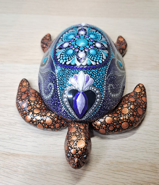 Original hand painted large and small decorative turtles. The have been hand cast using Herculite plaster. Each turtle is a uniquely designed one of a kind. I won't be making any further exact copies. These are so tactile as I have dotted over the top of each dot several times to give them the raised dots. They have been finished with 3 layers of protective varnish and carefully hand wrapped and gift boxed.